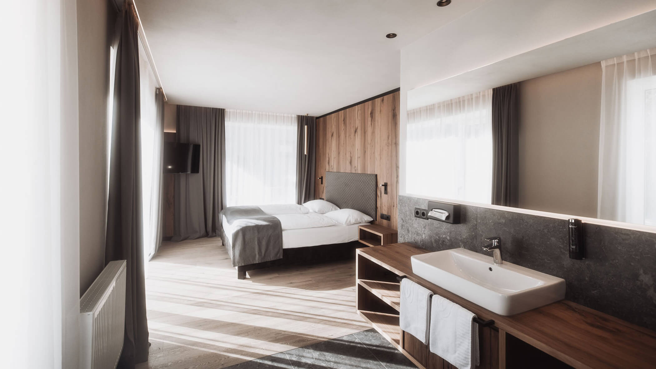 Obwohl das ehemalige Hotel Schönblick erst seit Kurzem im Besitz unserer Familie liegt, so trägt es doch schon unsere Handschrift: das elegante Design, die formvollendete Gemütlichkeit, der neue Name „Montis“ – fast ein bisschen so wie nach Hause kommen.