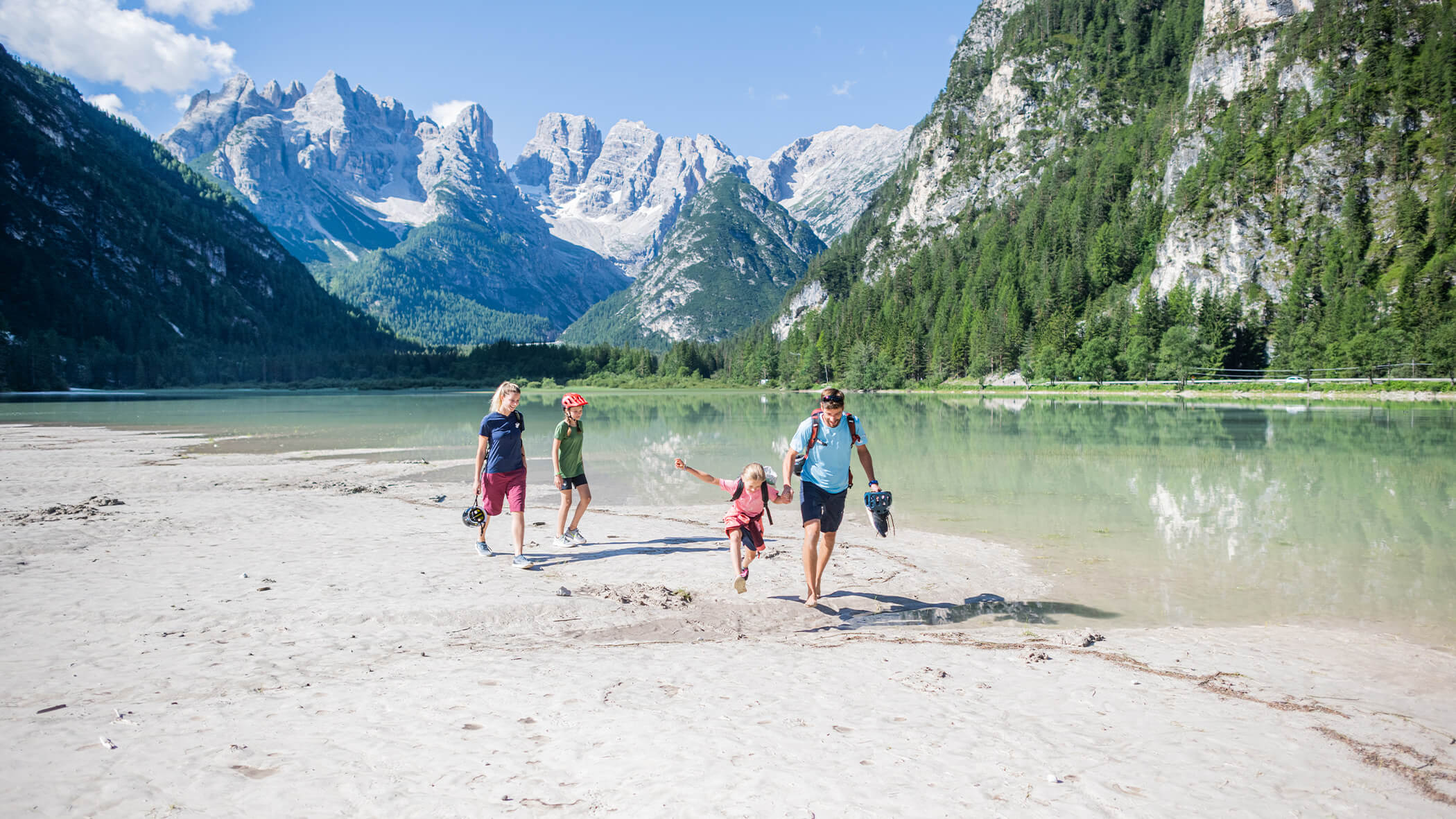 Der gut besuchte Bergsee ist in den Sommermonaten ein geschätztes Ausflugsziel. Wer allerdings ein gutes Timing hat, früh am Morgen oder am späten Nachmittag startet und noch dazu mit dem E-Bike unterwegs ist, hat den Pragser Wildsee häufig (fast) für sich allein. Oder zumindest einen Teil davon.